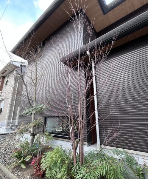 自宅の植栽の葉が落ちて、