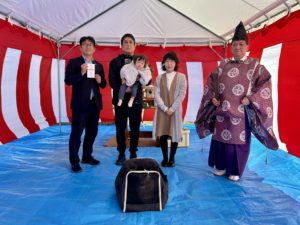 暑い日でしたので神社にお邪魔しての地鎮祭でした。