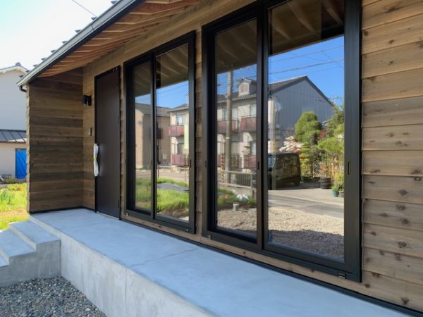 外壁は杉板のみで、統一感のあるデザイン。